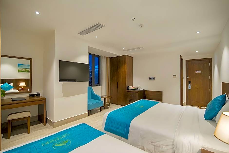 This twin room features a rooftop pool. Providing free toiletries, this twin room includes a private bathroom with a walk-in shower, a bidet and a hairdryer. The air-conditioned twin room provides a flat-screen TV with cable channels, soundproof walls, a mini-bar, a wardrobe as well as sea views. The unit offers 2 beds.